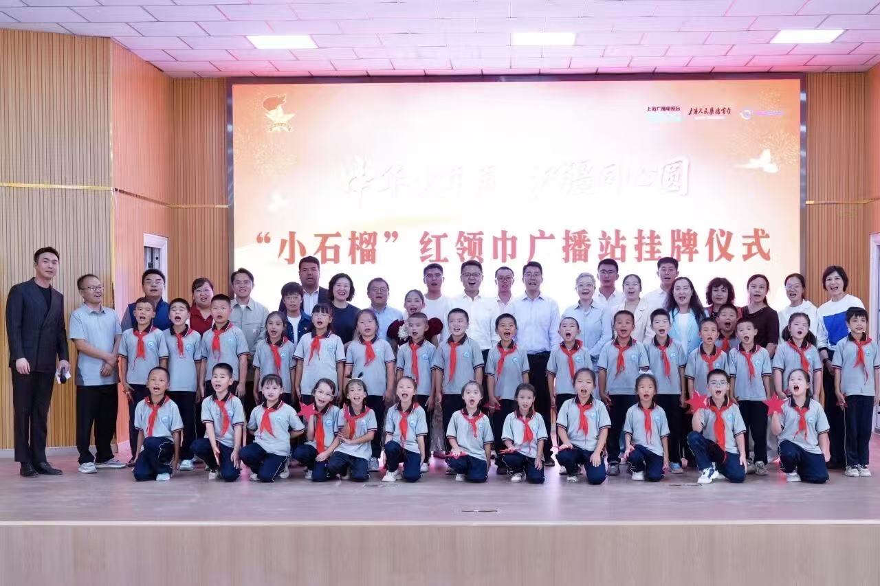 喀什地区教育局副局长、上海市对口支援新疆工作前方指挥部社会发展事业组组长孙利强,兵团草湖项目区党委宣传文化部副部长、上海市对口支援新疆生产建设兵团前方指挥部社会发展组组长杨国珩,上海广播电视台东方广播中心纪委书记、副总编辑张明霞共同为巴楚县友谊小学、第五小学,叶城县红军小学、第四小学,泽普县第二小学,莎车县托木吾斯塘镇智慧小学,以及兵地融合发展草湖项目区红旗农场学校、托云牧场学校、兵地融合发展草湖项目区中学授予“小石榴”红领巾广播站站牌。