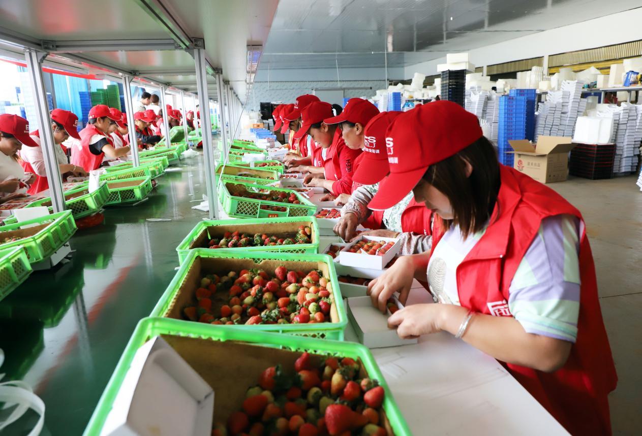 开展草莓分拣、包装技能培训后让群众在家门口就业。姜连聪摄