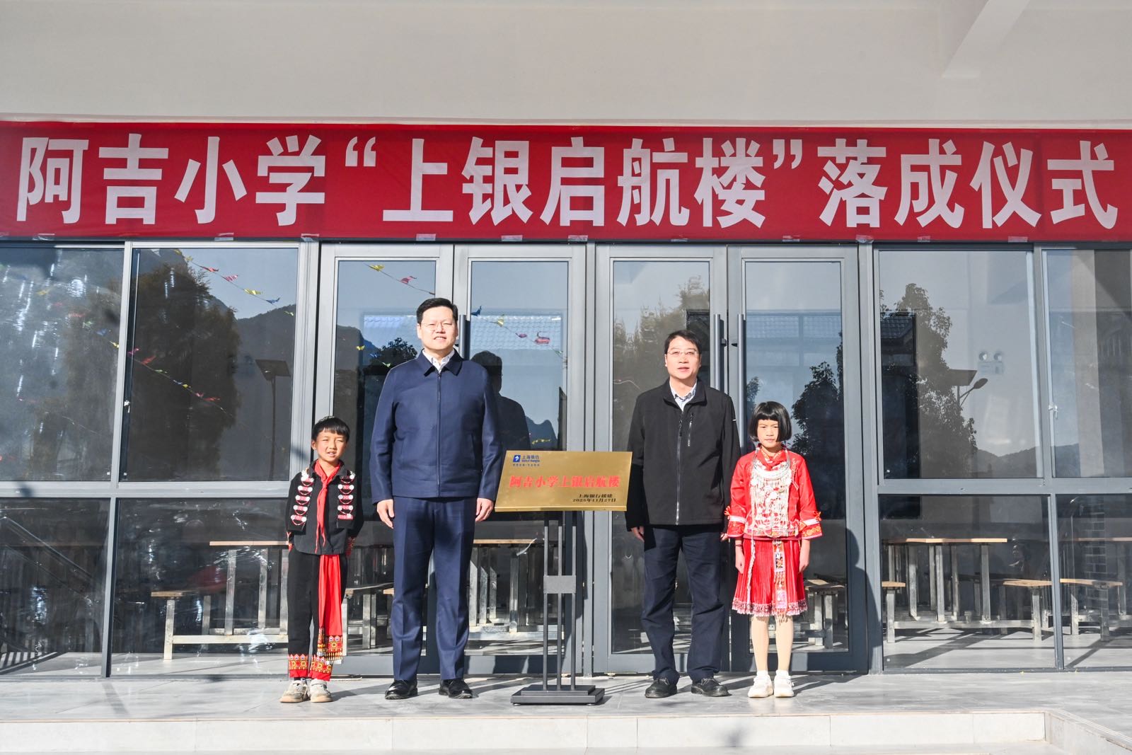 阿吉村是砚山县最偏远、最贫困的村落之一,居住着苗族、壮族、彝族等少数民族。当得知阿吉小学孩子们只能在露天餐厅吃饭,没有专门的音乐、绘画、体育等特色教室后,上海银行专门拨付资金援建综合楼。
