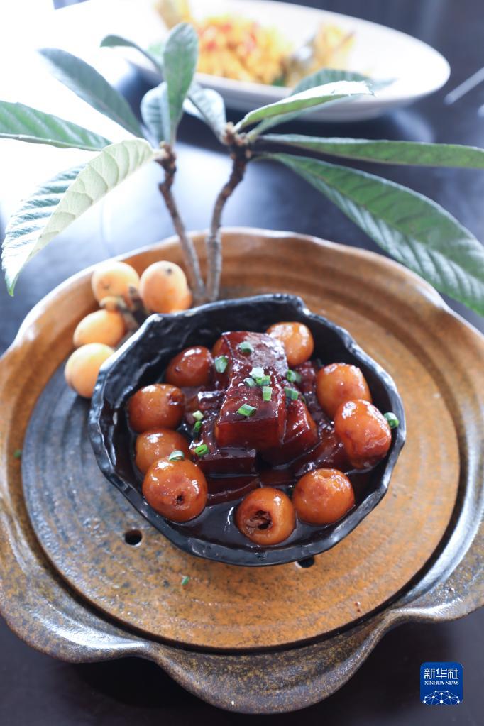塘栖镇塘栖村的一家餐厅制作的枇杷特色菜(5月17日摄)。