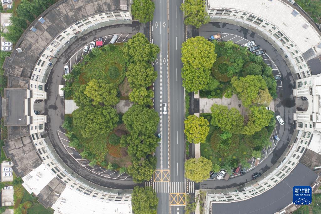 6月7日在浙江省绍兴市孙端街道安桥头村拍摄的“弶与小鸟雀”竹弶广场(无人机照片)。新华社记者 才扬 摄