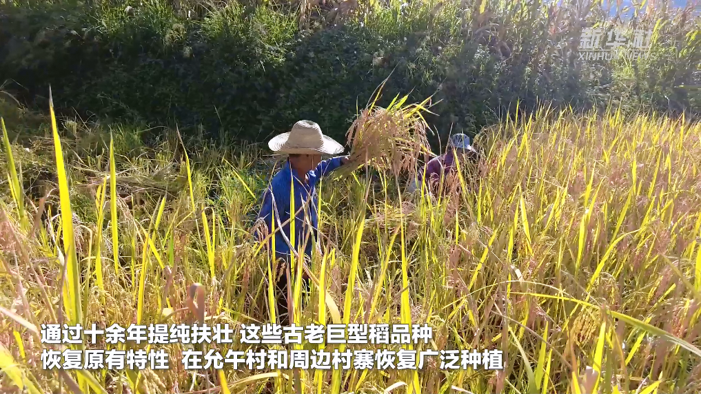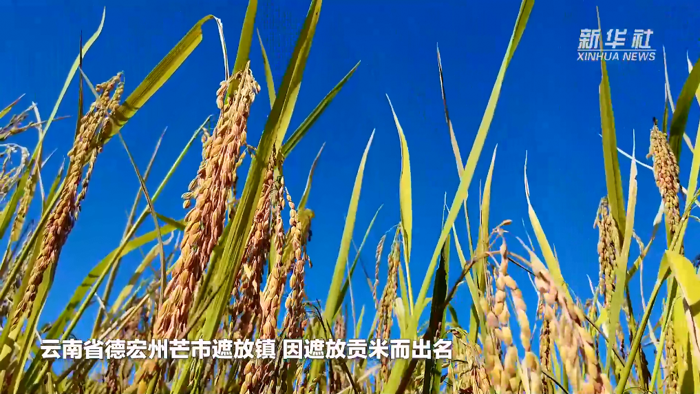 云南省德宏州芒市遮放镇,因遮放贡米而出名。秋收末尾,遮放镇允午村的半山腰上,农民正在太阳下收割这种巨型稻,今年的遮放贡米迎来丰收。(记者:孙敏) 从曾被弃种到回归田地并卖出好价钱,遮放贡米见证了时代的发展。 上一篇 下一篇