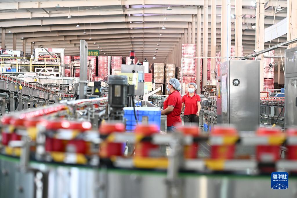 10月24日,工人在贵州王老吉刺柠吉惠水基地饮料灌装车间内工作。
