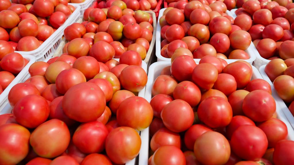 图为正准备发往北京和上海市场的宁城番茄。(新华社发 齐学涛 摄)