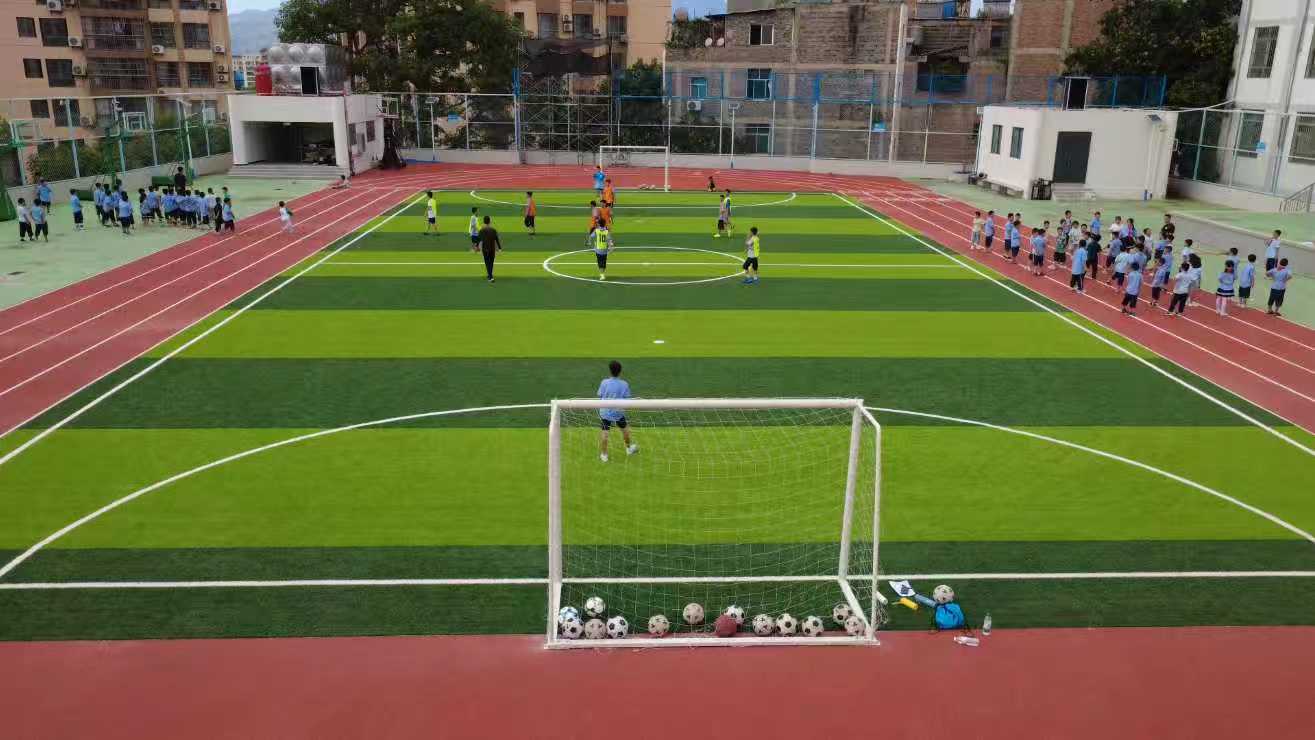 上海普陀援建足球场。饶兵摄