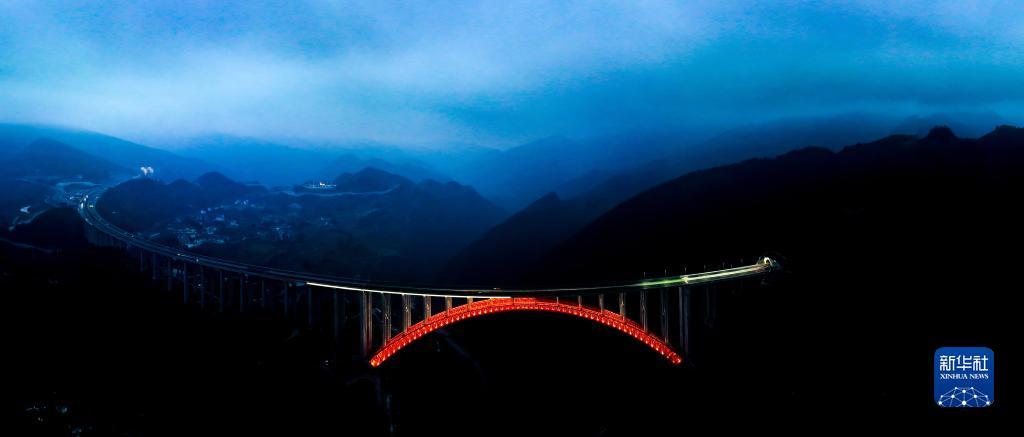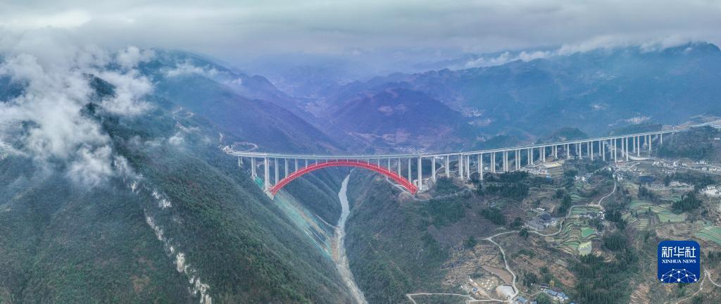 在贵州省遵义市,仁遵高速控制性工程之一大发渠特大桥跨越高山峡谷,为偏远山乡带来新的生机。
