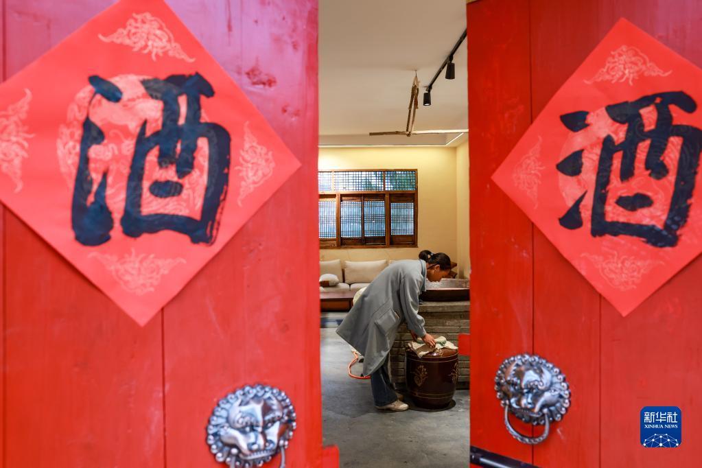 团结村村民在自家经营的烟酒店内摆放货物(2月2日摄)。