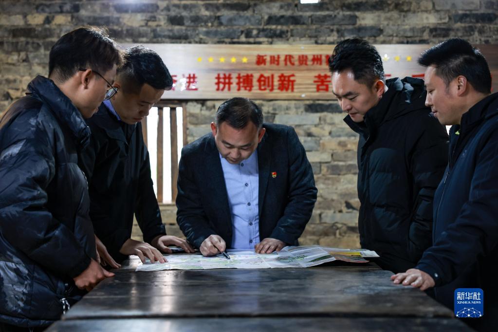 团结村党总支书记王朝海(中)在与村民交流下一步的发展规划(2月2日摄)。