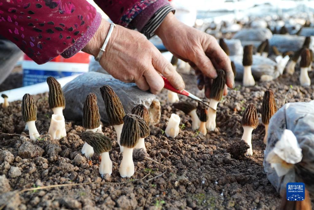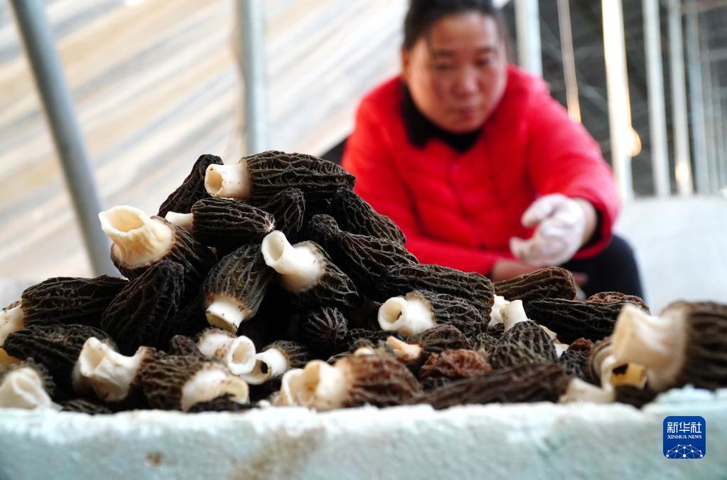 2月22日,在山东省成武县汶上集镇,羊肚菌已经成熟等待收获。 近日,在山东省成武县,羊肚菌陆续达到成熟收获标准。当地根据市场需求,发展羊肚菌产业,带动村民就业增收。 新华社记者 徐速绘 摄 2月22日,在山东省成武县汶上集镇,村民在收获羊肚菌。 2月22日,在山东省成武县汶上集镇,村民在整理收获的羊肚菌。 上一篇 下一篇