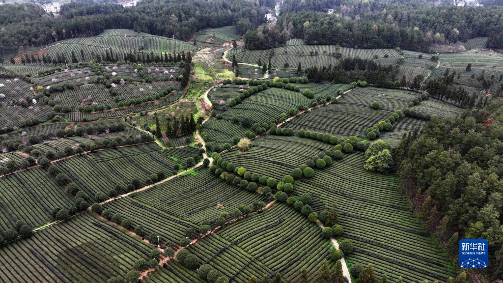 3月23日拍摄的凤冈县永安镇田坝社区生态茶园基地(无人机照片)。新华社记者 杨楹 摄