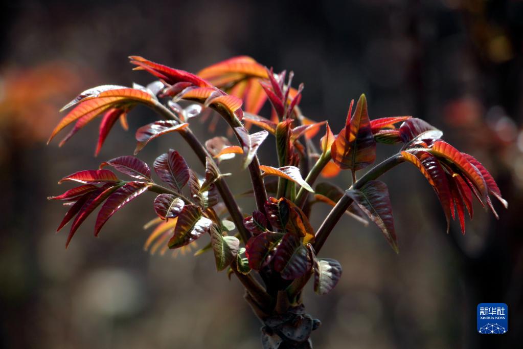 一丛丛红绿相间的香椿芽长势喜人(3月29日摄)。