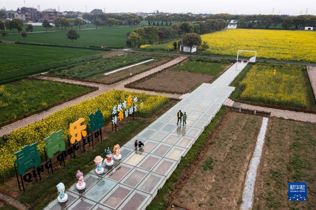 空中俯瞰嘉兴市秀洲区王店镇镇中村的“青青乐地”农耕文化园(4月3日摄,无人机照片)。