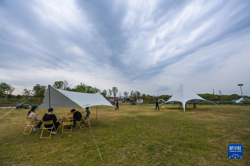 4月3日,游客在嘉兴市秀洲区王店镇南梅村的南梅里营地休闲。